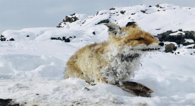 Van'ın Çaldıran ilçesinde etkili olan Sibirya soğukları, bir tilkinin telef olmasına neden oldu.